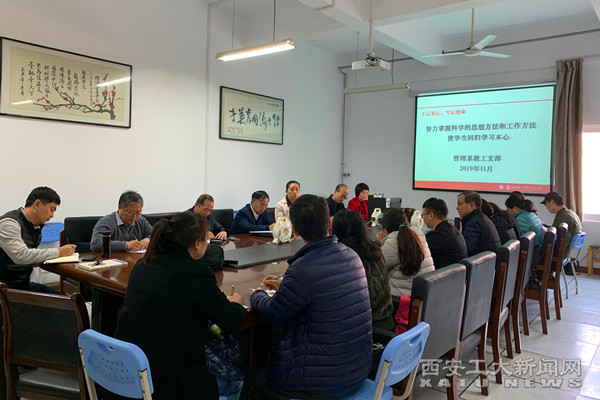 管理系教工支部书记陶娜以“努力掌握科学的思想方法和工作方法——使学生回归学习本心”为题,通过“望远镜—显微镜—反光镜—聚光镜”四维模式带领大家开展专题学习研讨。