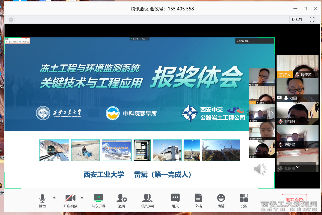 会上,雷斌作了题为《冻土工程与环境监测系统关键技术与工程应用报奖体会》报告。雷斌以获奖项目为例,从研究单位组成的遴选、成果简介的凝练、答辩前及答辩时的准备等方面进行了报告。成果的完成单位以学-研-产相结合,成果的凝练以需求为牵引、突出关键技术注重工程应用,提名书撰写应紧密围绕评价指标体系、答辩前视频准备及现场模拟演练等方面做了详细的经验分享。